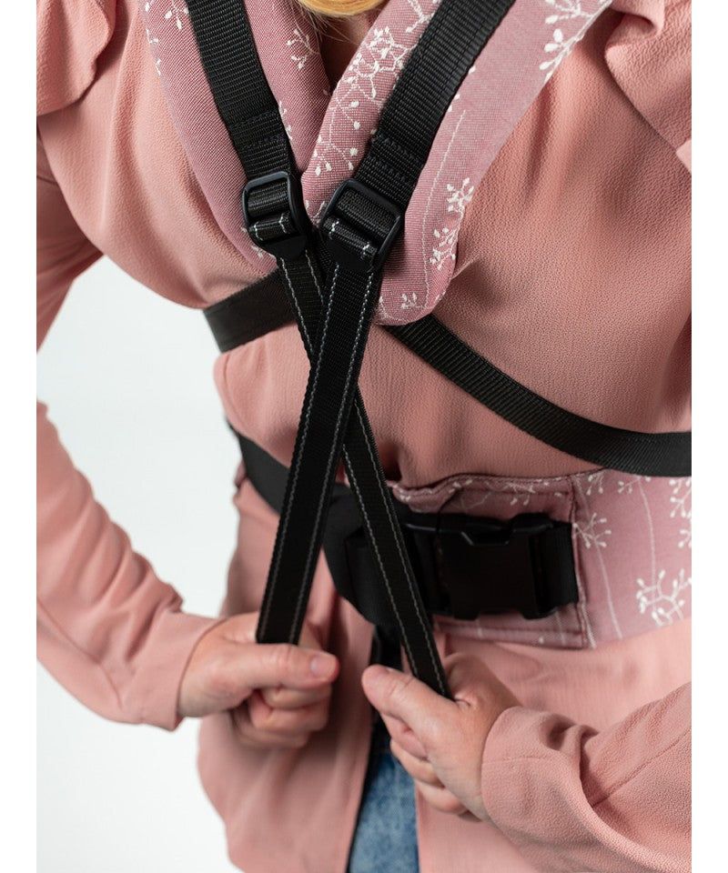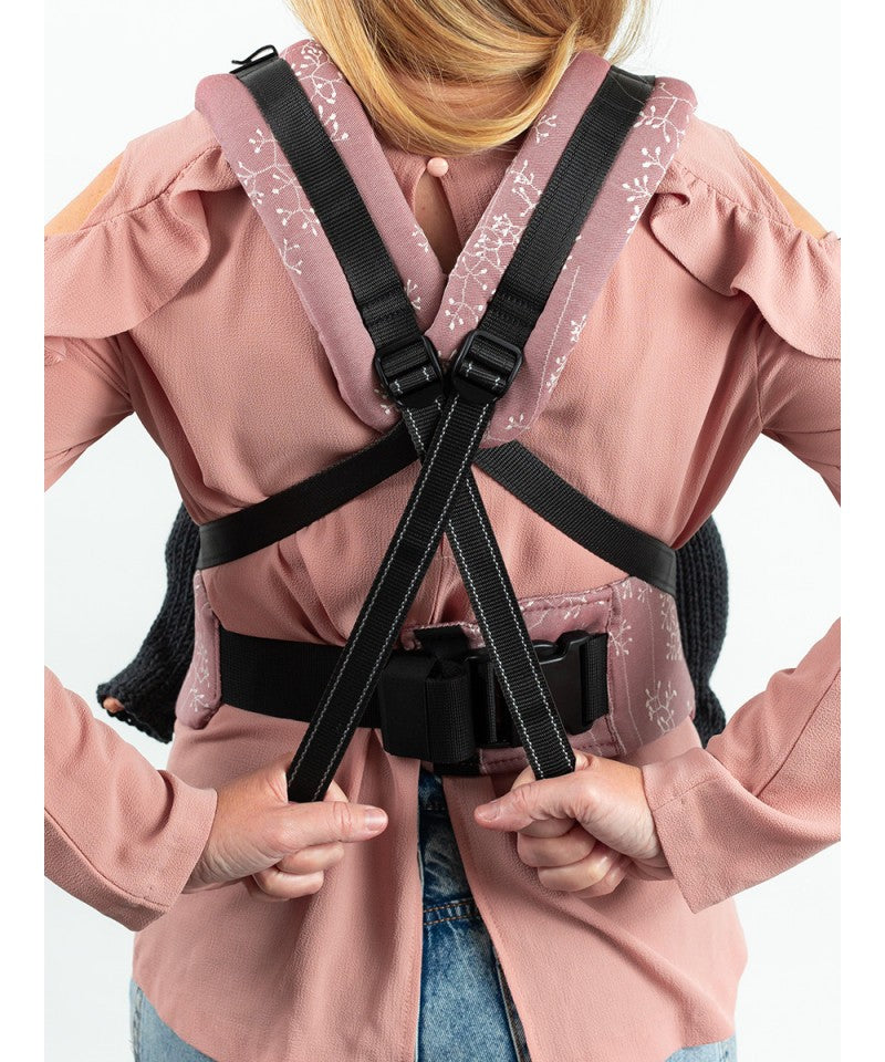 • Innovative straps connect under baby’s bottom → X or parallel style, front/back/hip carry – ultimate compact versatility