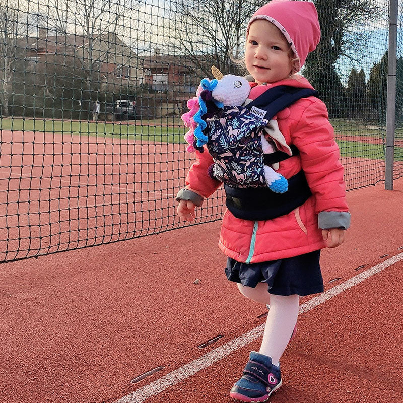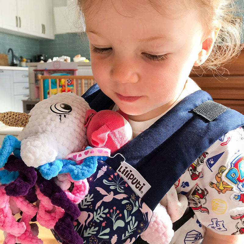 Marsupiul Liliputi Love Mini îi permite celui mic să își poarte jucăria preferată cu mâinile libere, făcând plimbările și joaca în aer liber mai ușoare, iar prietenii de pluș rămân curați și aproape. Este un accesoriu distractiv și practic, care încurajează și valorile atașamentului și ale parentingului cu blândețe.