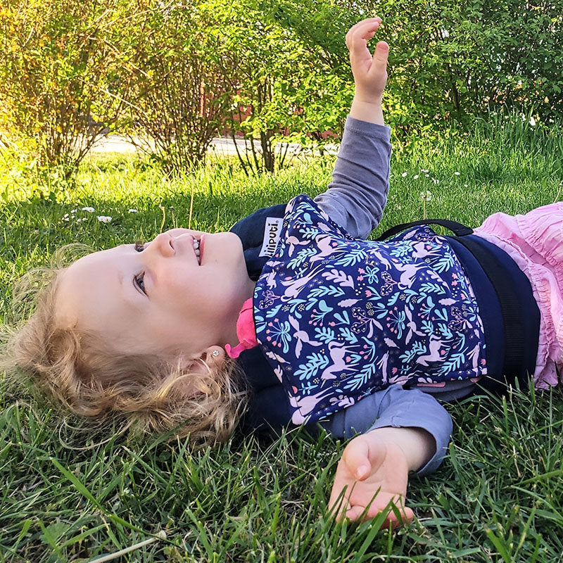 Cadoul ideal atunci când familia primește un nou bebeluș — îi ajută pe frații și surorile mai mari să participe la experiența babywearing-ului alături de mama și tata.