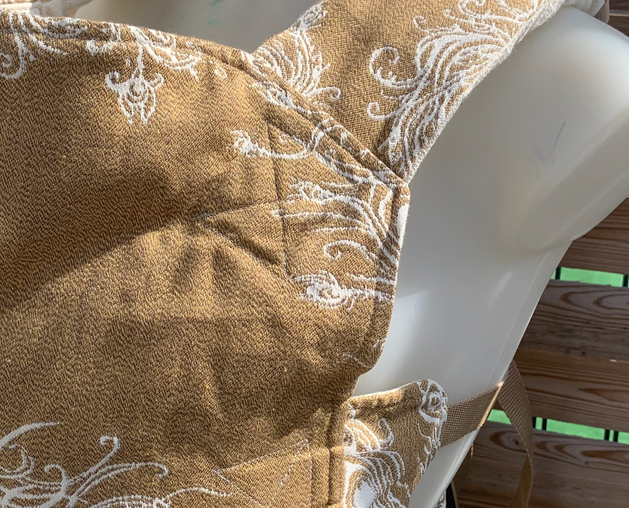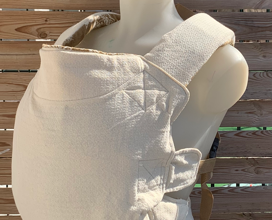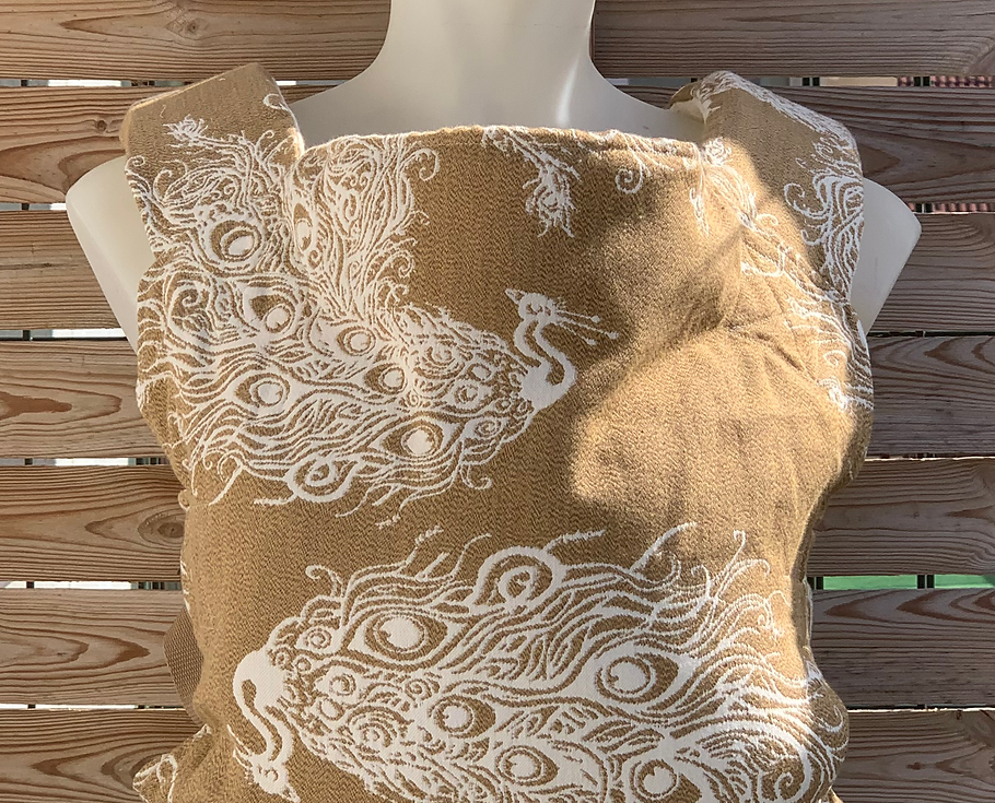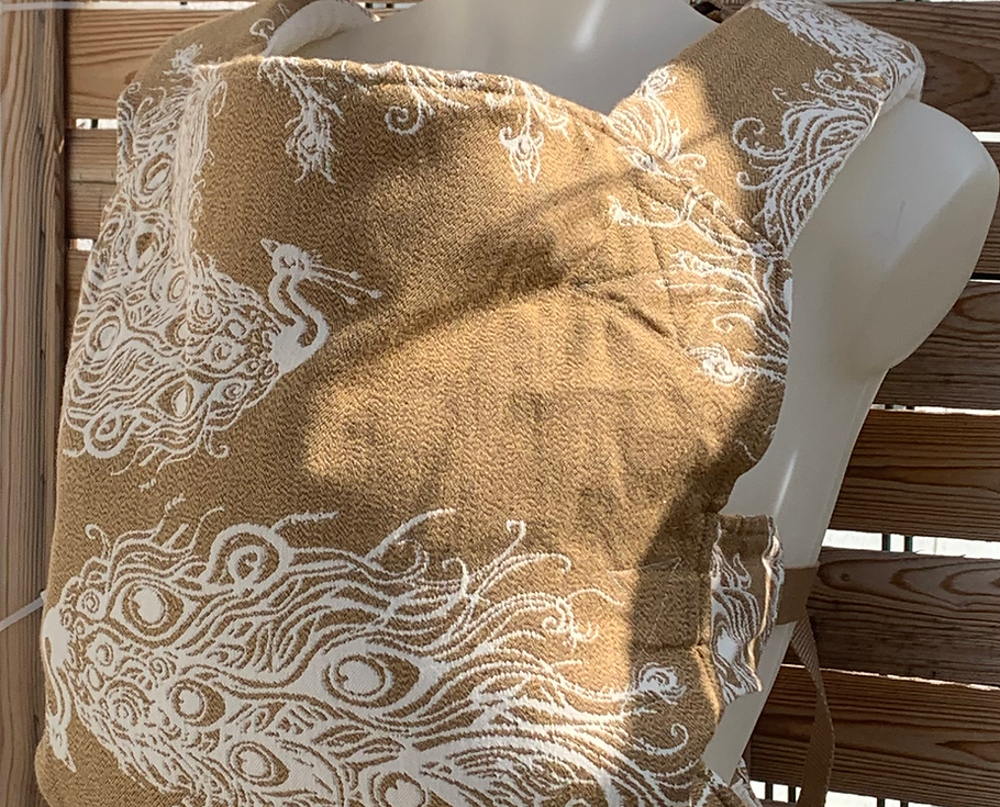Marsupiu ergonomic reversibil, realizat din țesătură de wrap.
