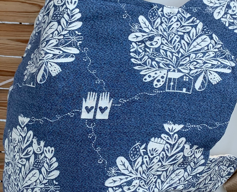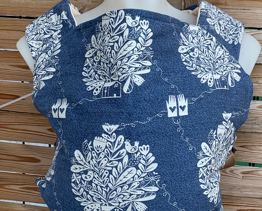 Marsupiu ergonomic reversibil, realizat din țesătură de wrap.