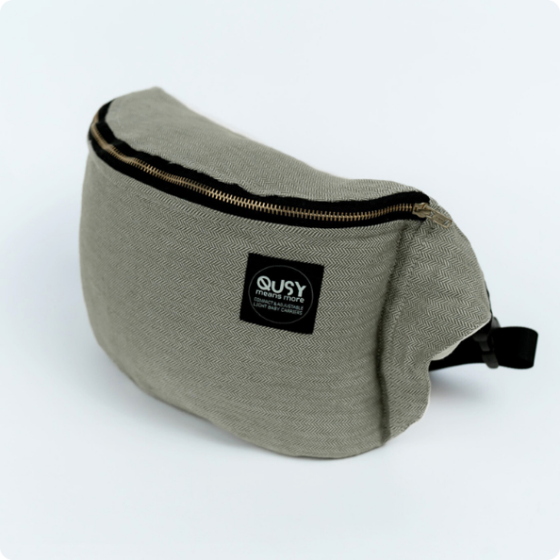Borseta QUSY a fost creată special pentru părinții care folosesc marsupiul QUSY. Dimensiunea și forma ei sunt concepute pentru a găzdui perfect marsupiul pliat, lăsând totodată loc pentru câteva lucruri esențiale.