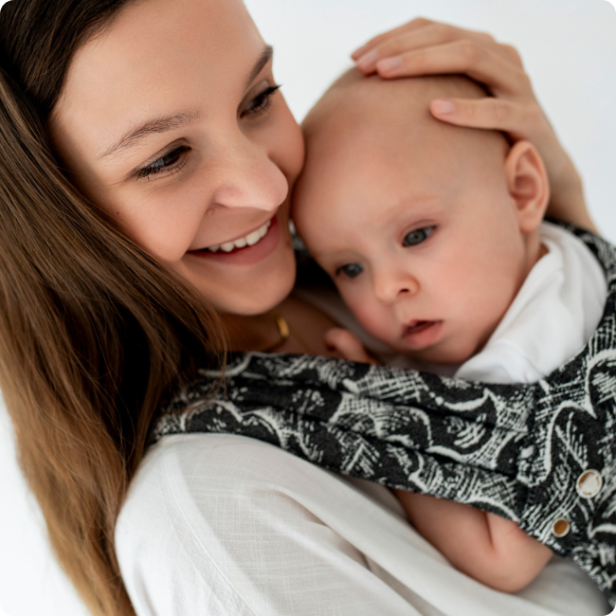 QUSY este un marsupiu reglabil care crește odată cu copilul, oferind o potrivire perfectă de la primele luni până la aproximativ 3–4 ani.