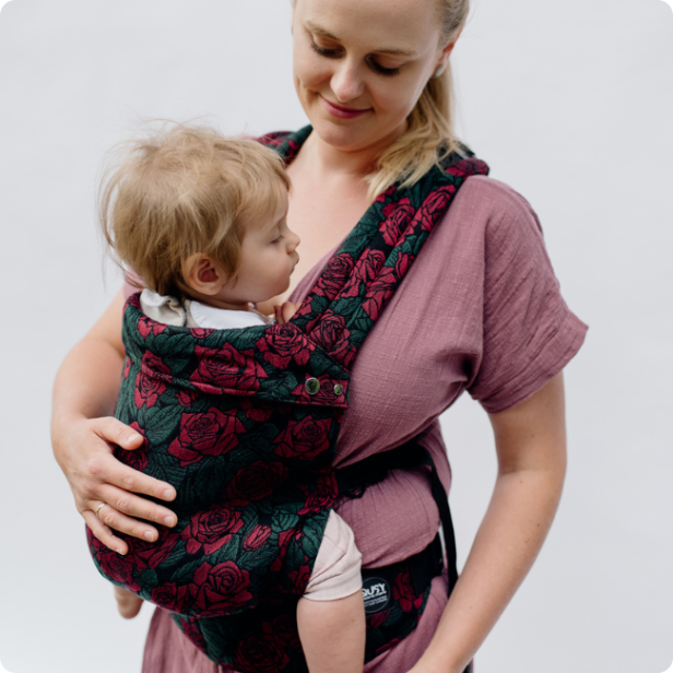 QUSY CARRIER STANDARD 2.0 / SHE LIKE ROSES – Marsupiu ergonomic reglabil din Tencel™ și bumbac pieptănat