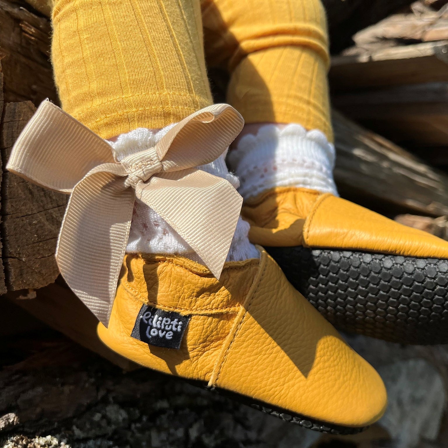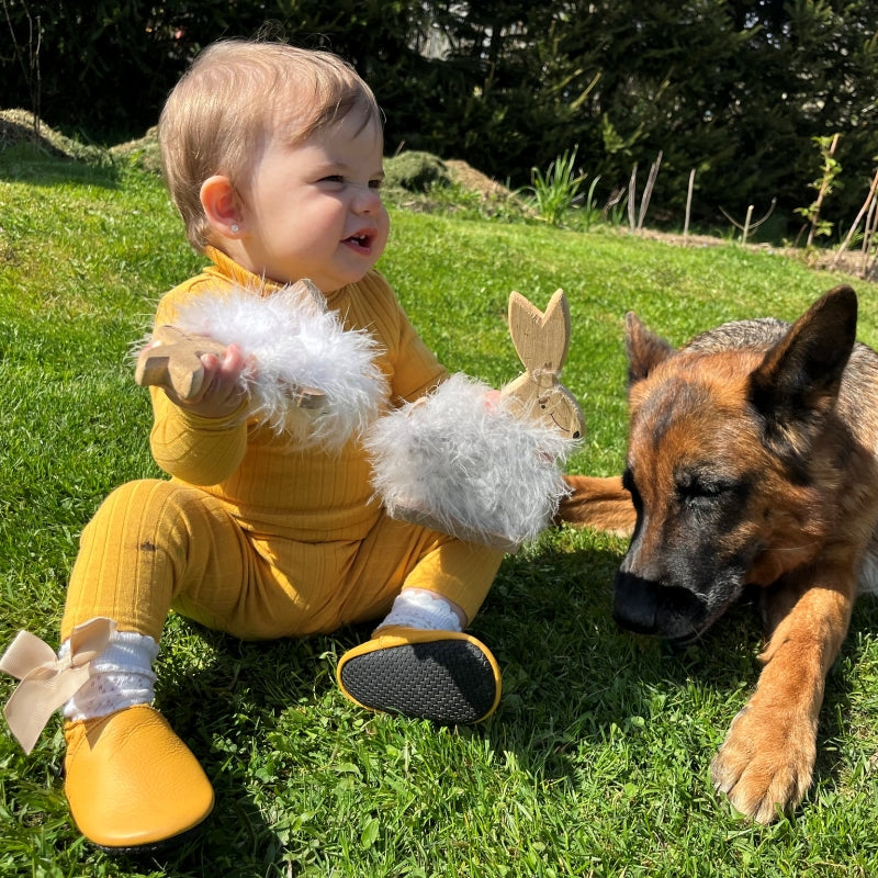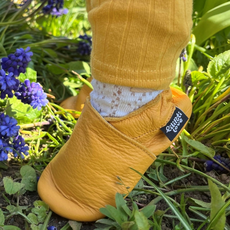 Perfecte pentru babywearing, pentru interior și, mai ales, pentru perioada în care copilul învață să meargă. Acești pantofi sunt gândiți în primul rând pentru copiii care stau deja mult în picioare. Pielea moale încurajează mișcarea naturală și oferă beneficiile mersului desculț — însă nu este la fel de rezistentă la uzură ca materialele sintetice sau cauciucul.