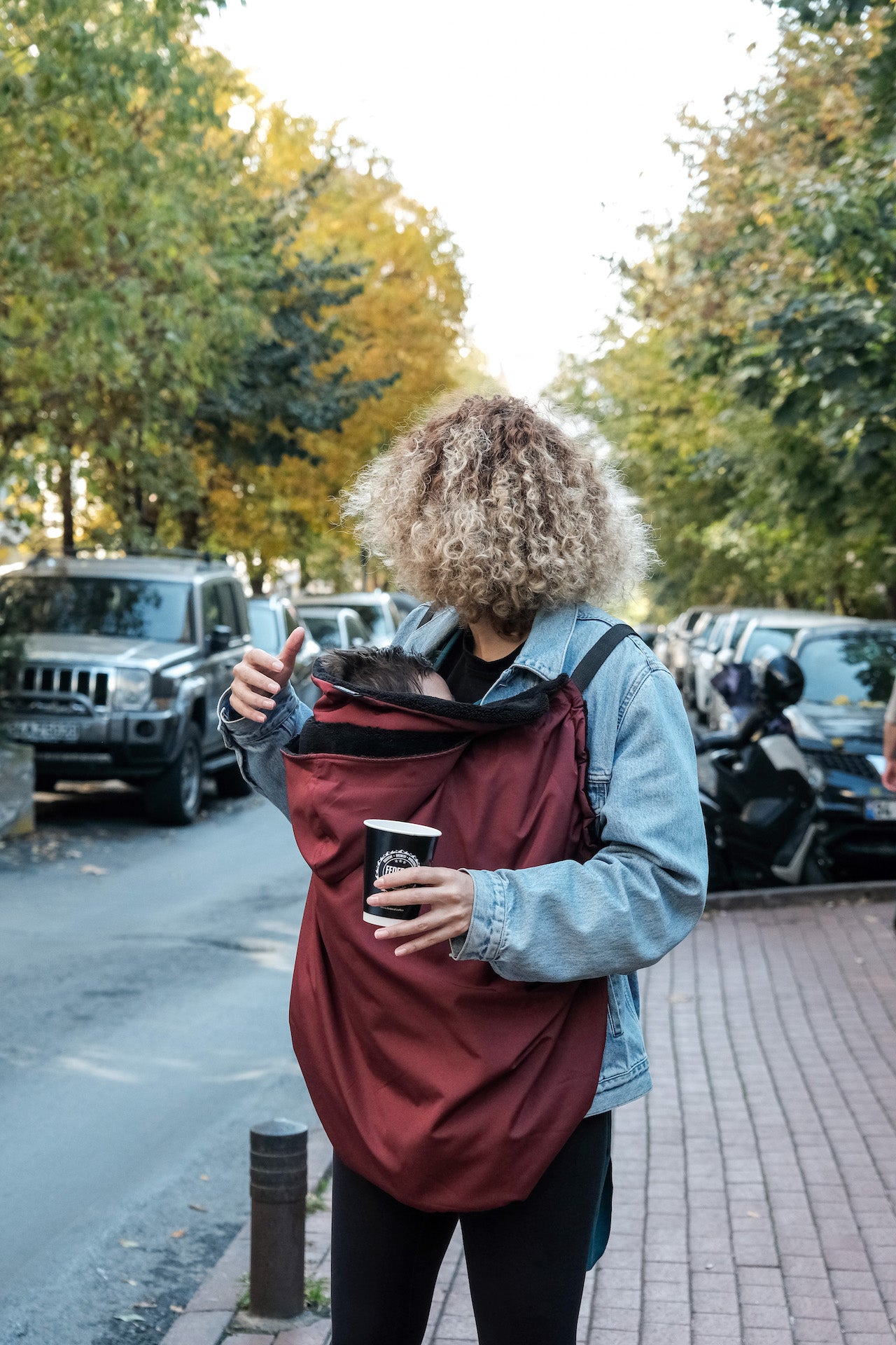 The Neko Sling Cover keeps your baby warm and dry during cold or rainy weather. It fits all types of carriers – wraps, buckle carriers and meh dai – and is designed for both front and back carrying positions.