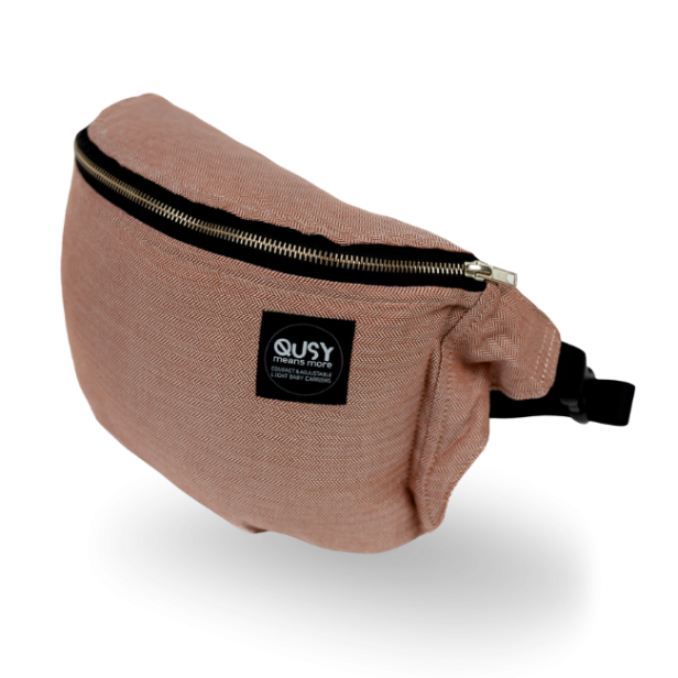 Our hip bags feature an internal zippered pocket. You can store your QUSY in it or use it as a carry-on bag for small items while strolling!